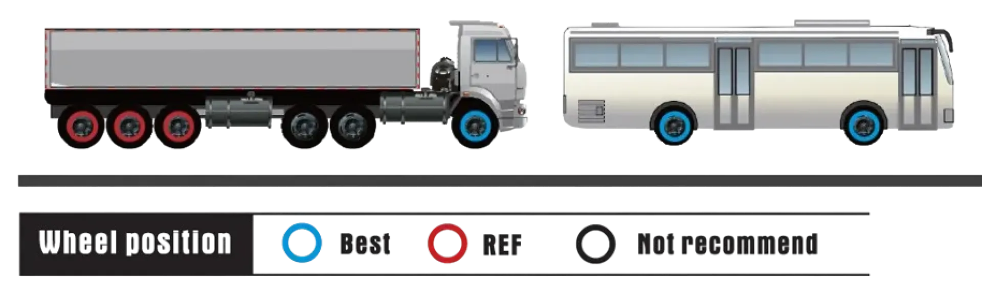 Directional position tire suitable for mid-to-long distance trucks and busses running on paved roads;
